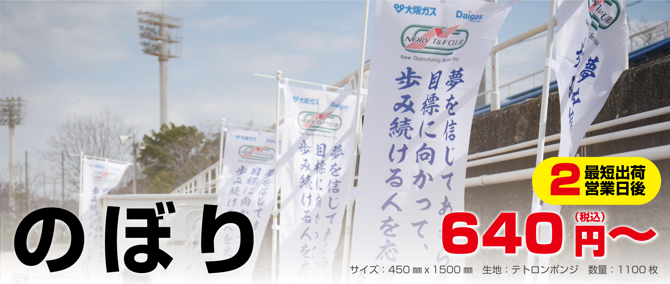 おすすめ用途:のぼり、社旗、応援旗、ゲートフラッグ、連続旗