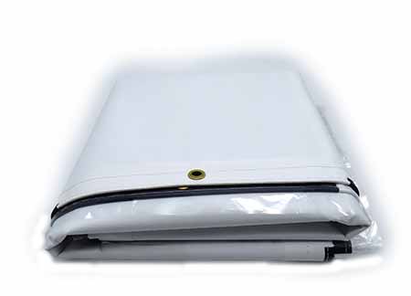 網目状に穴が開いたターポリンで風抜けがよいので裂けにくいのが特徴です。通常のターポリンと比較的軽いので、扱い易い生地です。継加工なしで短辺最大幅480cmの大型幕が製作できます。