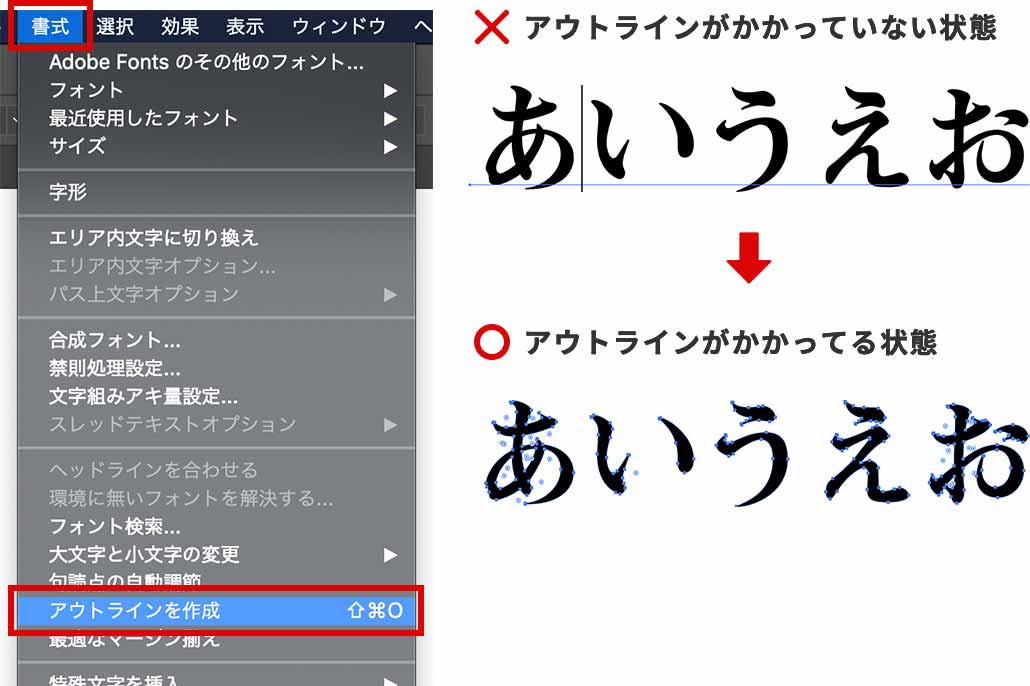 書体を入力された場合は、「アウトラインを作成」の処理をお願いします。