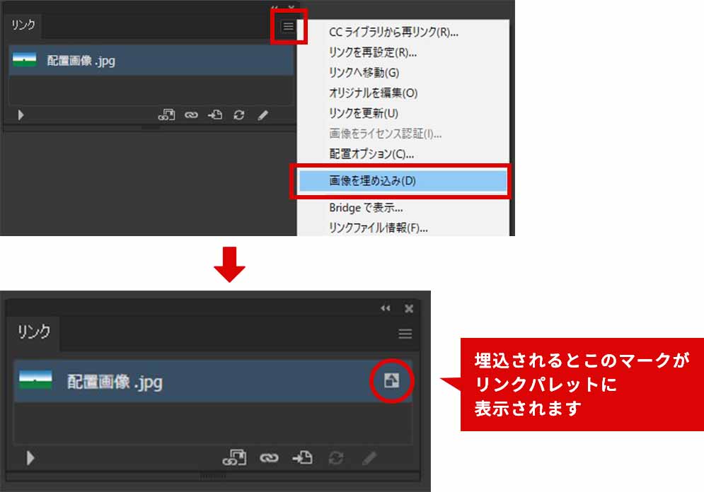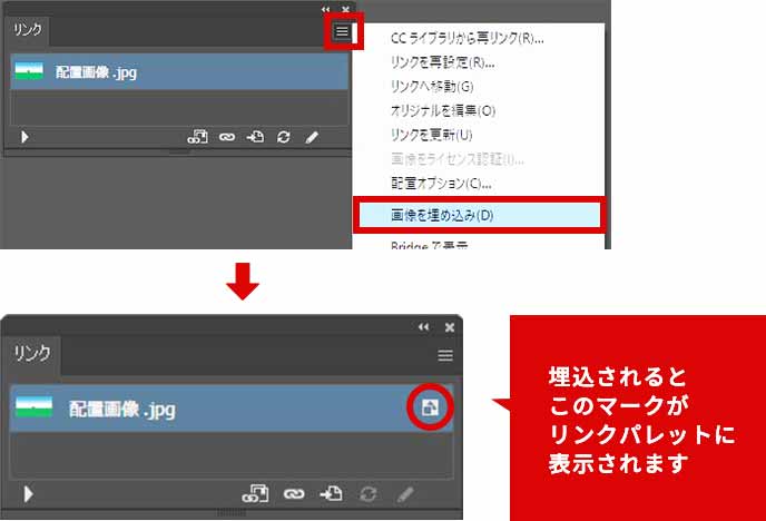 リンクパレットに埋め込み画像として表示されます