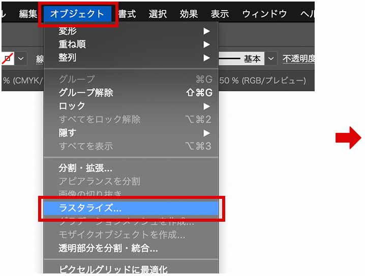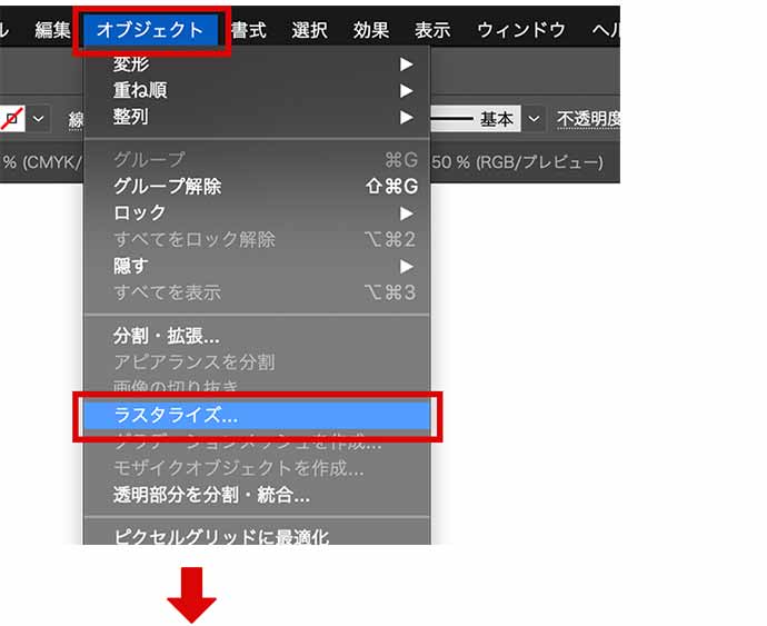 「オブジェクト」>「ラスタライズ」